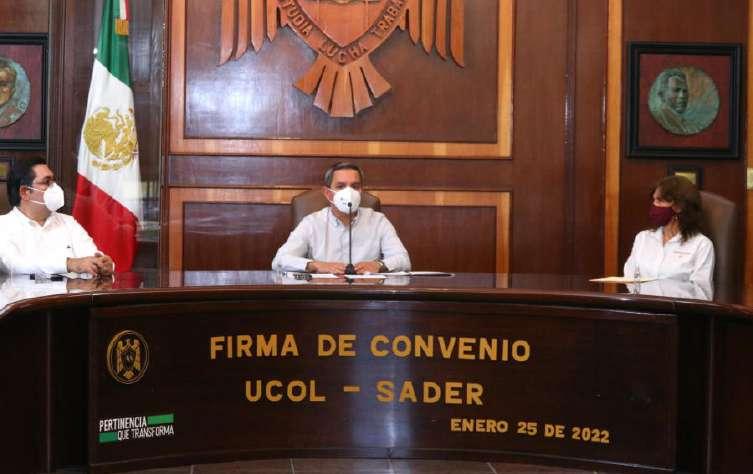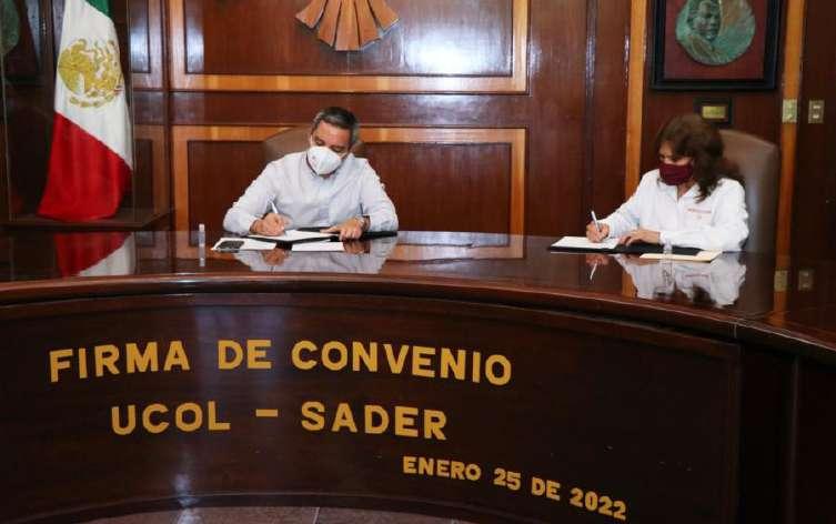 Este martes (24), la Universidad de Colima, representada por su Rector, el doctor Christian Jorge Torres Ortiz Zermeño, y la Oficina de Representación de la Secretaría de Agricultura y Desarrollo Rural (SADER) en el estado, a cargo de la ingeniera María Esmeralda López Mendoza, firmaron un convenio de colaboración para realizar programas, proyectos y actividades en común, así como generar la transferencia de conocimiento entre ambas instituciones.