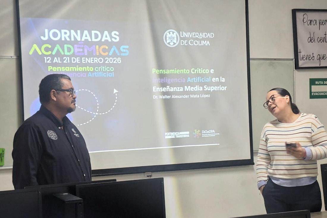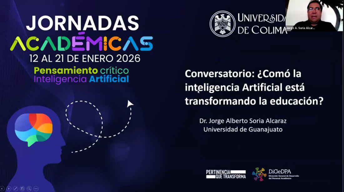 “Todo proceso que utilice la inteligencia artificial es susceptible de tener errores, por lo que siempre es necesario que, al utilizarla en el proceso educativo, se cuente con un experto humano, un profesor o guía que valide esa información y sepa encauzar esos conocimientos”, comentó el doctor Jorge Alberto Soria Alcaraz, integrante del Cuerpo Académico de Inteligencia Artificial y profesor de tiempo completo en la Universidad de Guanajuato, al impartir la charla “¿Cómo la inteligencia artificial está transformando la educación?”, como parte de las Jornadas Académicas 2026 de la Universidad de Colima (UdeC).