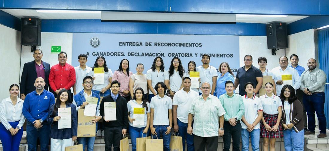 Durante el evento se entregaron reconocimientos a las y los estudiantes ganadores. En la categoría de declamación fueron reconocidos alumnos de los bachilleratos 1, 4 y 18; en oratoria, estudiantes de los bachilleratos 16, 2, 33 y 20, mientras que en la categoría de Nacimientos Tradicionales Mexicanos se reconoció a los grupos de los bachilleratos 4, 34, 31 y 26.
