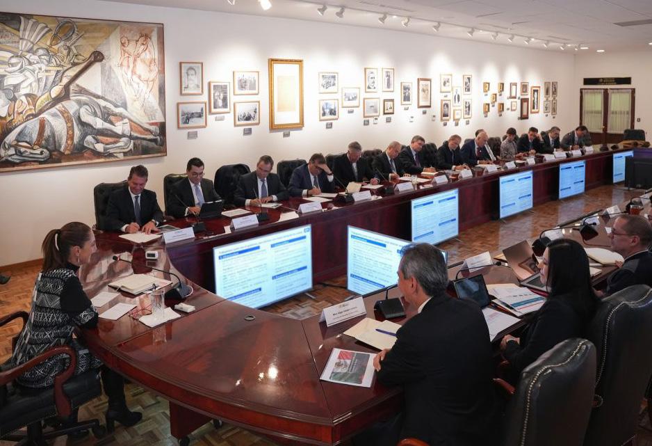 La comitiva de la Canaco, encabezada por su presidenta, Gabriela Helena Gómez Brun, estuvo integrada por: Jorge A. Espejel, vicepresidente de Afiliaciones; Rocío Abril Morales, vicepresidenta del Área Legal y Jurídica; José Luis Torres, secretario; Hugo García, vicepresidente de Franquicias; y Gabriel Misael Hernández, coordinador del Área de Comunicación y Estrategia.