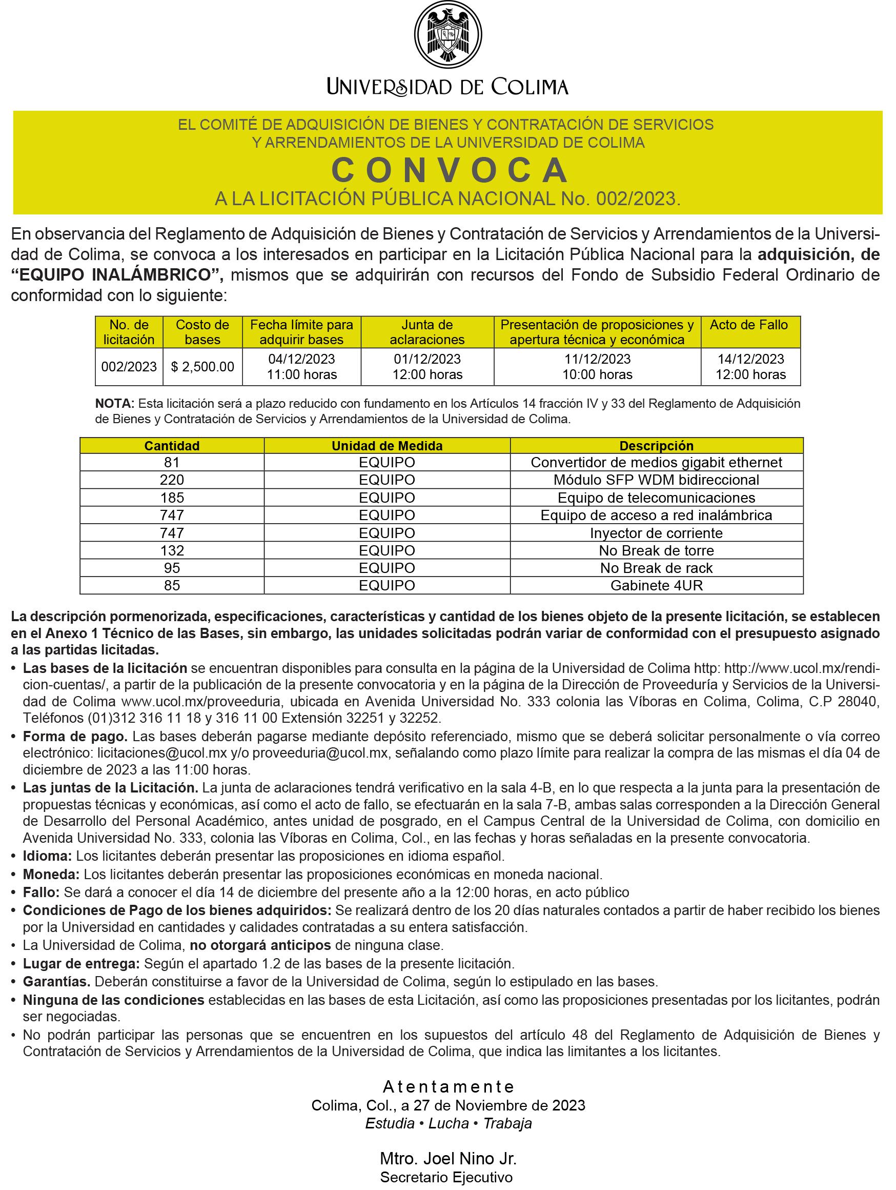 ra Vizcaíno, el subsecretario de cultura, Emiliano Zizumbo dijo que “son 83 años de formar profesionales, mejores seres humanos y la masa crítica del Estado. Que nadie venga a decir cómo se hacen las cosas dentro de la universidad, ya que esta debe llevar a cabo sus procesos de manera independiente, libre y pacífica”. El funcionario dijo que el gobierno del estado trabaja de la mano con la Universidad de Colima y lo seguirá haciendo. De esta manera, se constata la unidad como cemento básico para realizar con criterios de excelencia, todo lo que es el quehacer universitario. Asimismo, se confirma la alianza estratégica entre 2 entes esenciales para el desarrollo de Colima. El gobierno del estado y la Máxima Casa de Estudios. Enhorabuena. A destacar. En tono grandilocuente, echado para adelante, estuvo en Colima Samuel García precandidato presidencial de Movimiento Ciudadano, quien en su primera declaración dijo que ya dejó atrás a la precandidata del PRIAN Xóchitl Gálvez y ahora va por Morena, que se sienten ganadores, pero faltan 6 meses y “les vamos a ganar”, dijo el joven norteño que causa controversia por su estilo frívolo y desenfadado y que hace un llamado para conquistar el voto de los jóvenes, en el contexto de acusaciones de que es un simple esquirol para quitarle votos a la oposición y garantizar la victoria de la candidata de Morena, Claudia Sheinbaum Pardo. Ante cientos de personas, Samuel García pegó calcomanías en los autos en la esquina de SAMS Club, por Sevilla del Río y Constitución. Por cierto, que este sitio ya es emblemático para la política en Colima, pues, literalmente, todos los candidatos, de todos los partidos acuden a este lugar para hacer campaña electoral. El encuen-
