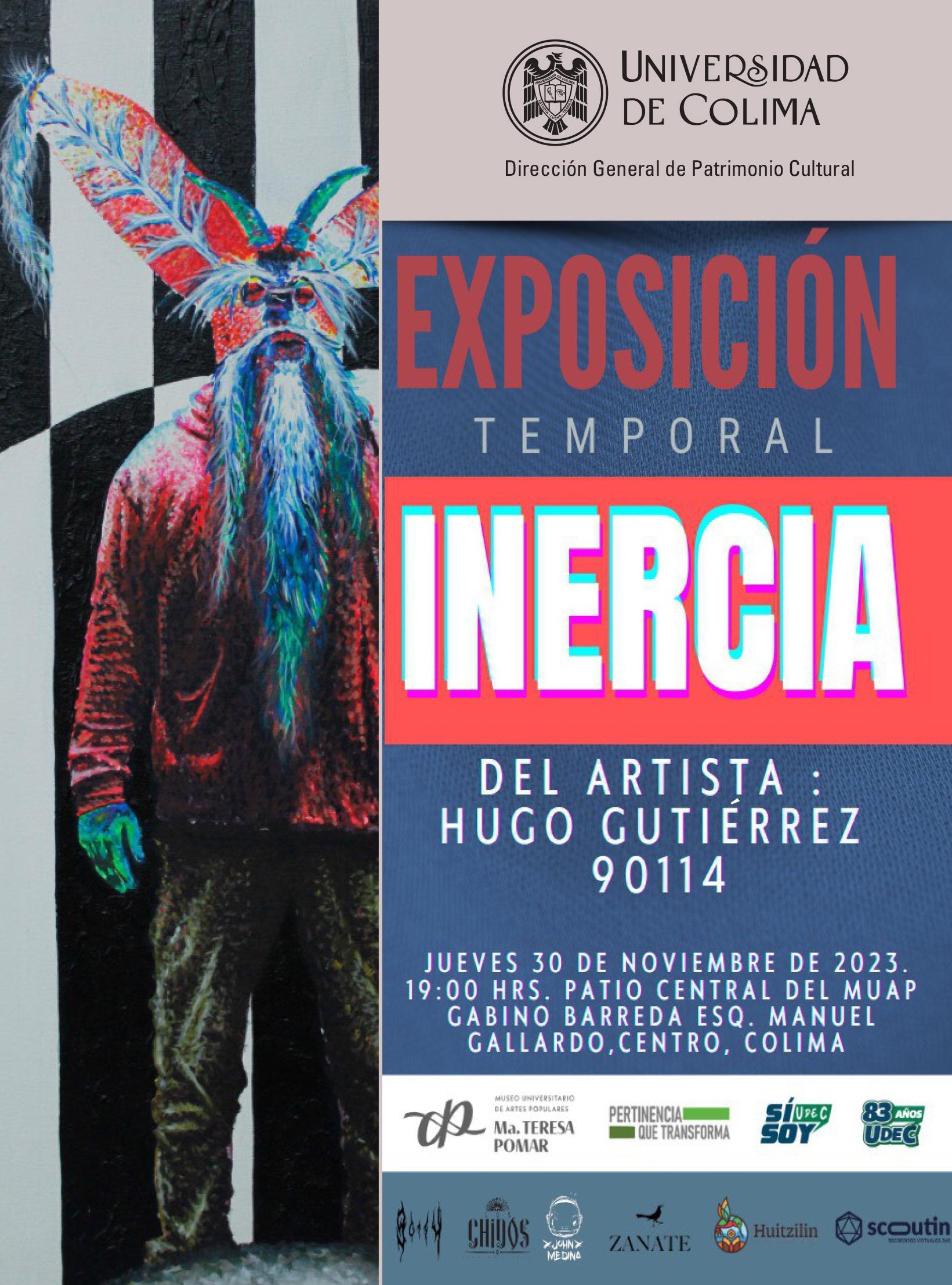 Este jueves (30), a las 7 de la tarde, el Museo Universitario de Artes Populares “Ma. Teresa Pomar” (MUAP) abrirá al público la exposición temporal “Inercia”, del artista Hugo Gutiérrez. Gutiérrez, conocido como 90114 durante el tiempo que hacía grafiti urbano, es un artista visual de Guadalajara, Jalisco, egresado del INBAL “José Clemente Orozco”.