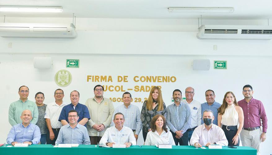 En la firma de convenio también estuvieron Leobardo George Ocón, abogado general de la Universidad de Colima; Óscar Javier Solorio Pérez, director general de Vinculación, así como directores de las facultades que se sumarán a esta renovación de convenio y funcionarios de la S ader