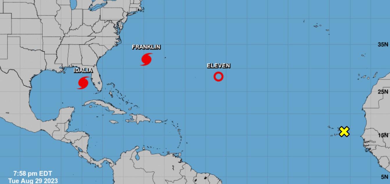 Al contrario que Idalia, Franklin se debilitará gradualmente en los próximos días, pero actualmente sigue siendo peligroso, por el oleaje y la resaca que produce en Bermuda y en la costa sureste de EUA. En cuanto a Idalia, que está loca-