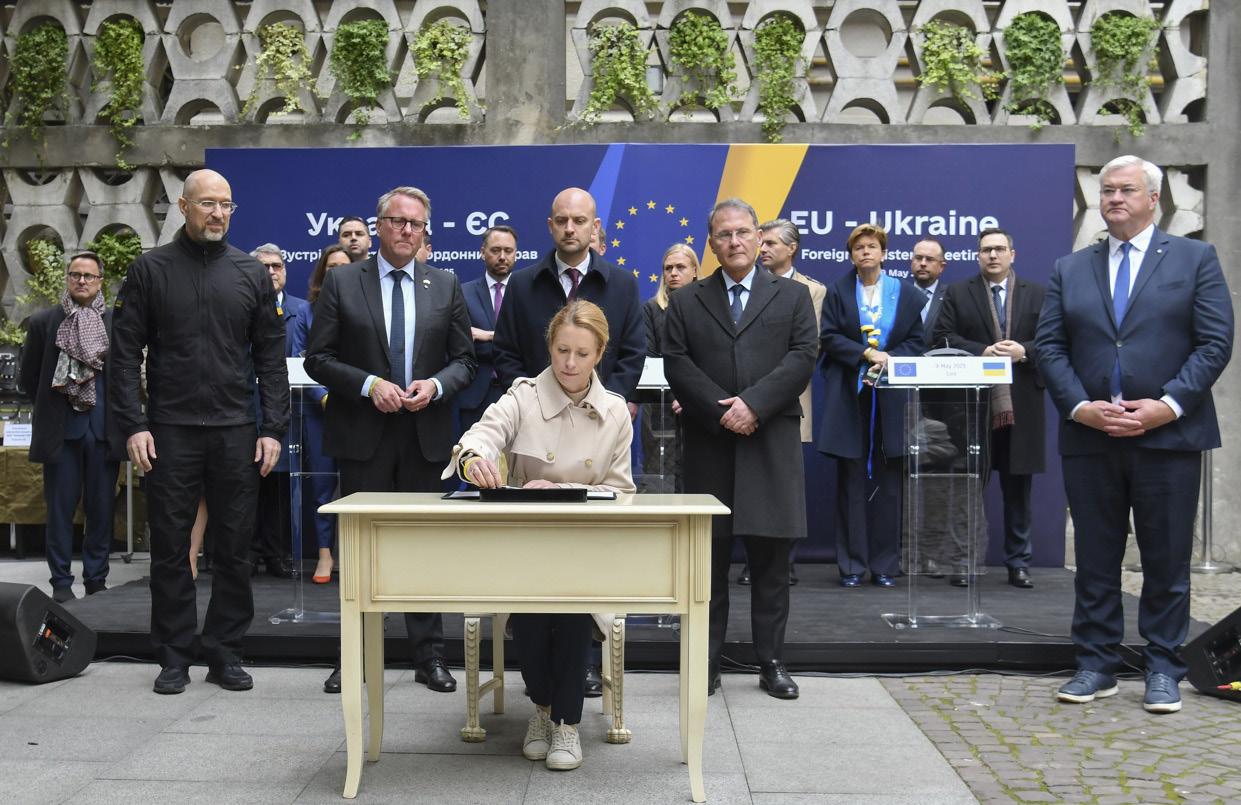 Kallas y los ministros de Dinamarca, Italia, Países Bajos y Francia firmaron en Leópolis un acuerdo para destinar mil millones de euros generados por los activos rusos congelados a la producción de armamento en Ucrania que se enviará directamente al Ejército, “una decisión histórica”, según Shmigal.
