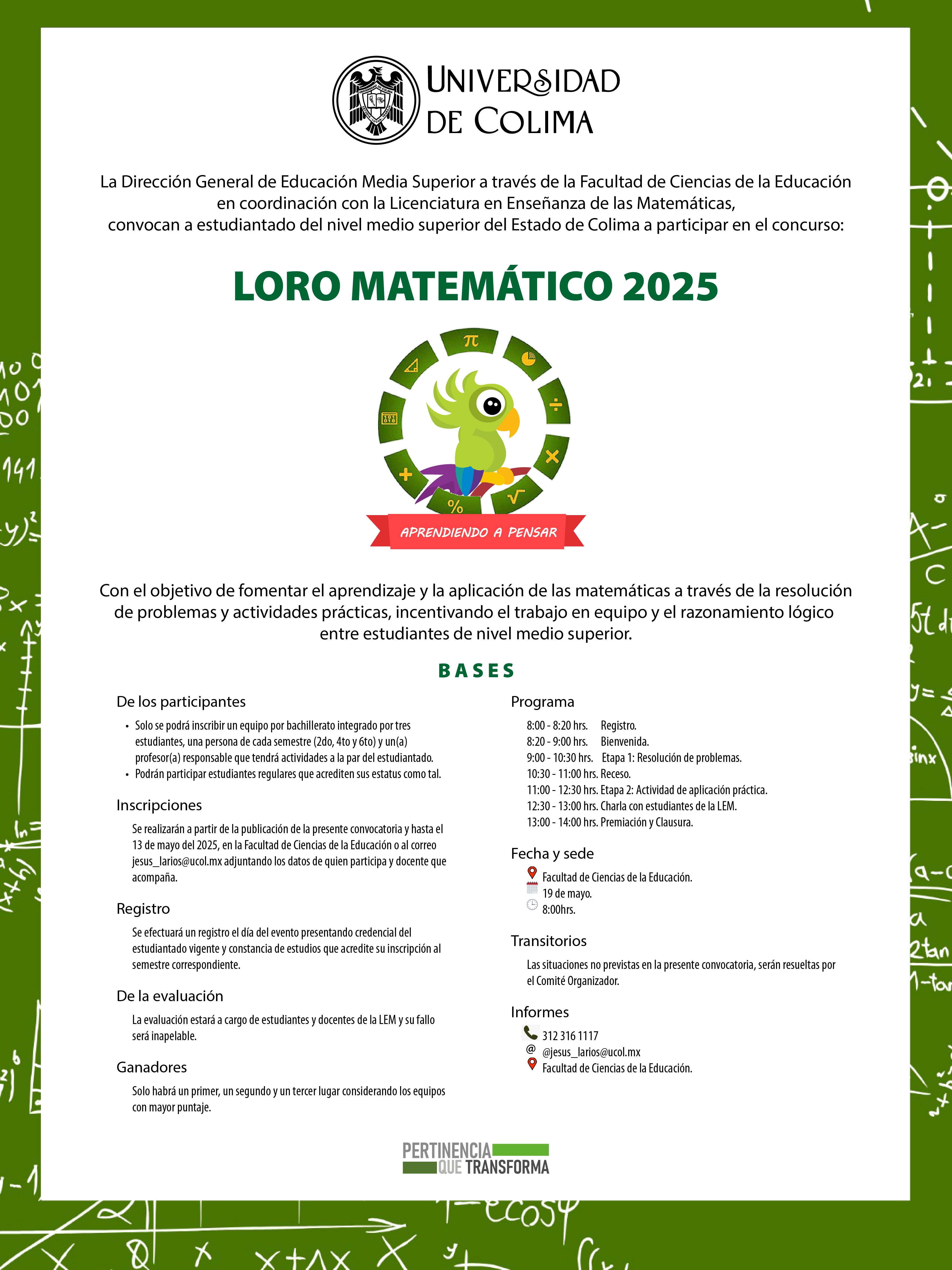 Con el propósito de reforzar los aprendizajes adquiridos en la asignatura de Matemáticas IV, 56 estudiantes de cuarto semestre del Bachillerato 7 de la Universidad de Colima (UdeC), ubicado en Armería, participaron en el taller virtual “Construcción geométrica de la elipse a partir de situaciones didácticas”, impartido por el maestro Ángel Leonardo Cubides Quevedo, docente de la Facultad de Educación de la Universidad Pedagógica y Tecnológica de Colombia, Campus Tunja.
