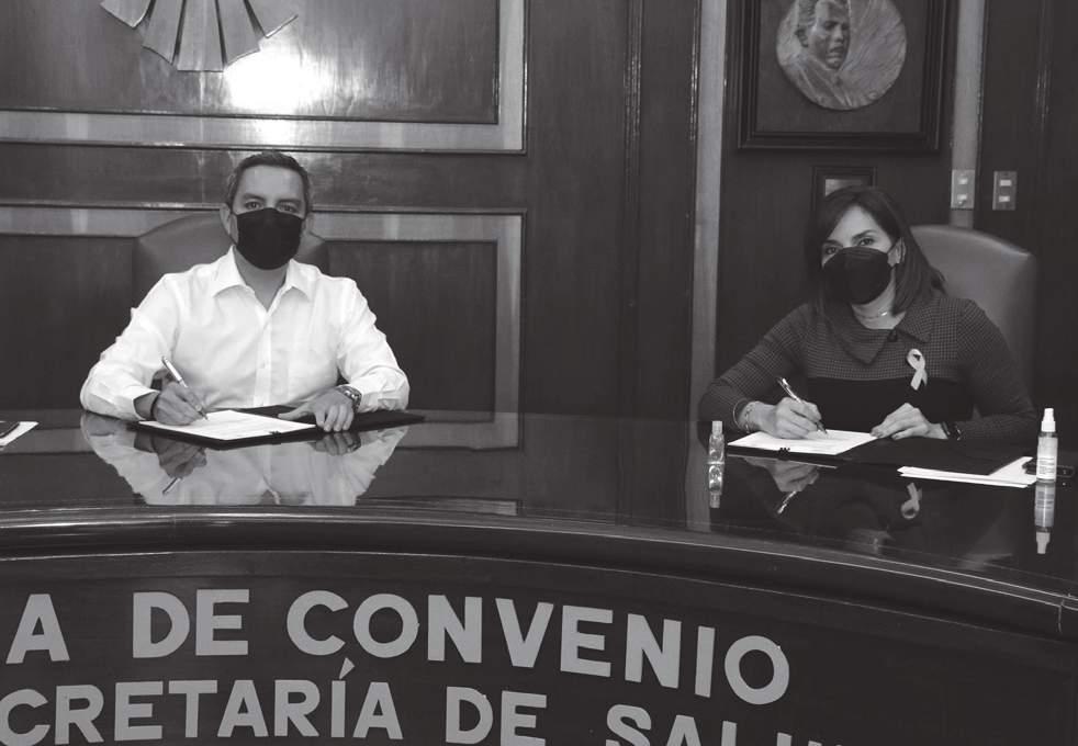Atestiguaron la firma de convenio, por parte de la Secretaría de Salud, Yadira Azucena Martínez, directora de Servicios de Salud; Paloma Rodríguez,