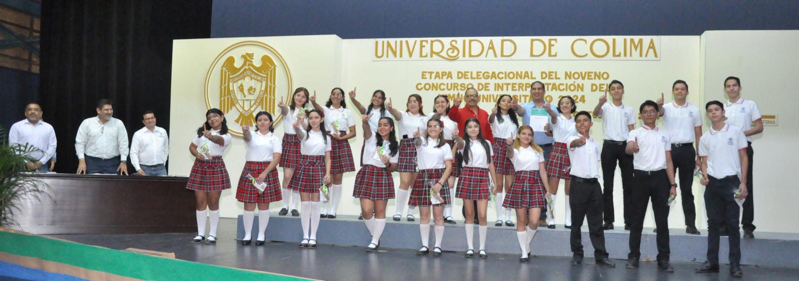 El coro del Bachillerato 1 de la Universidad de Colima ganó el noveno Concurso de Interpretación del Himno Universitario 2024, en su etapa delegacional. Ellos y ellas representarán a la Delegación Colima en el concurso regional que se llevará a cabo en los próximos días.