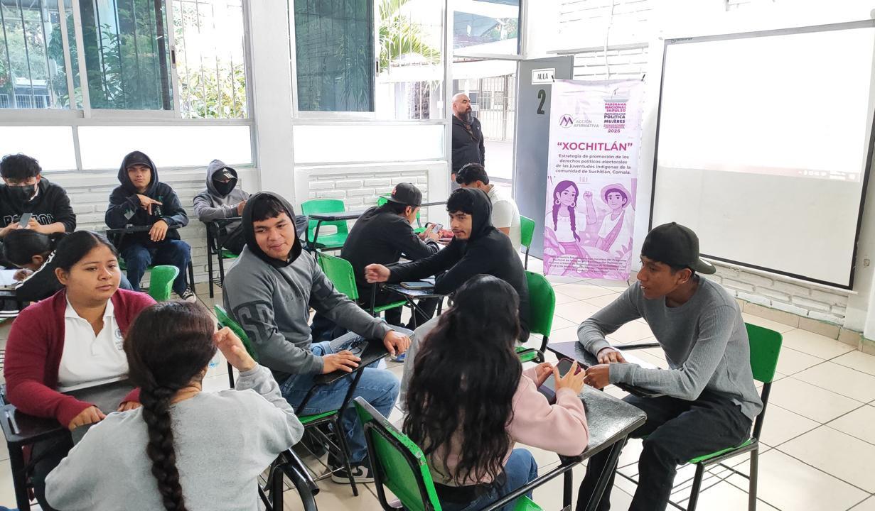 Con el objetivo de enriquecer la formación ciudadana y estimular la participación en la vida democrática del país, durante febrero y marzo de 2026, el Instituto Nacional Electoral (INE), la organización Mujeres en Acción Afirmativa A. C., y la Universidad de Colima, a través del Bachillerato 32, desarrollaron el proyecto “Xochitlán: Estrategia de promoción de los derechos políticos-electorales de las juventudes indígenas de la comunidad de Suchitlán”.