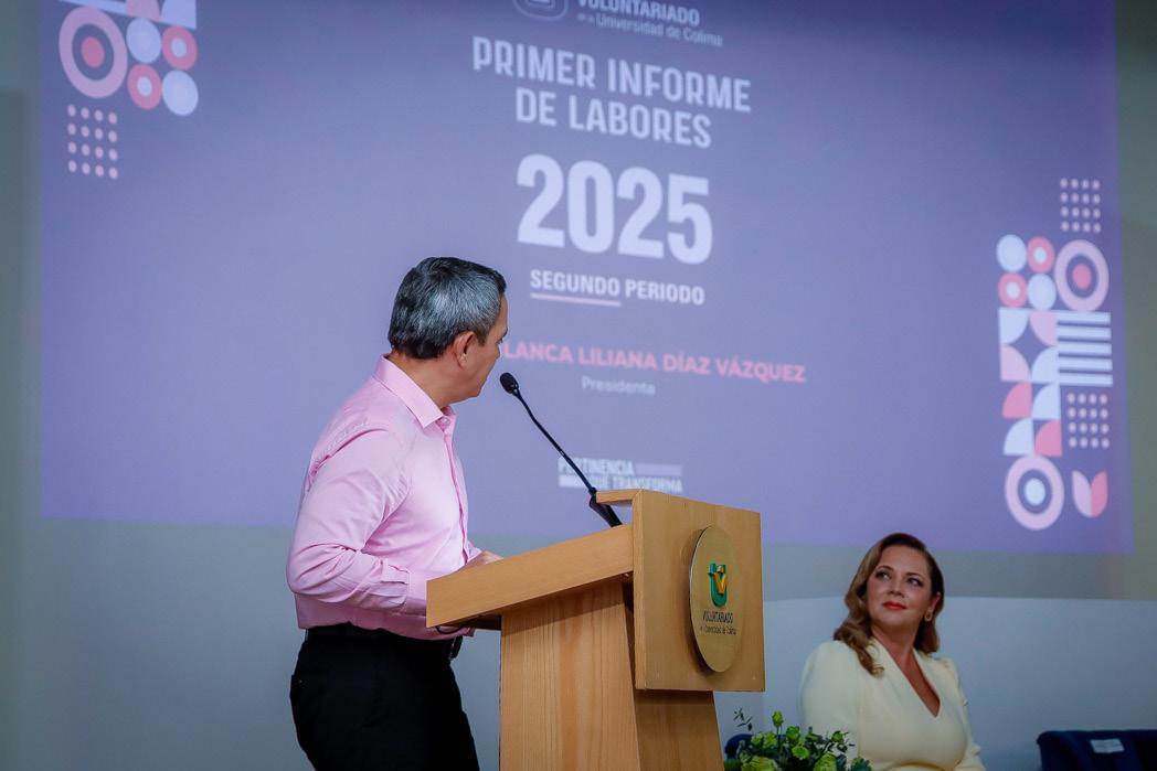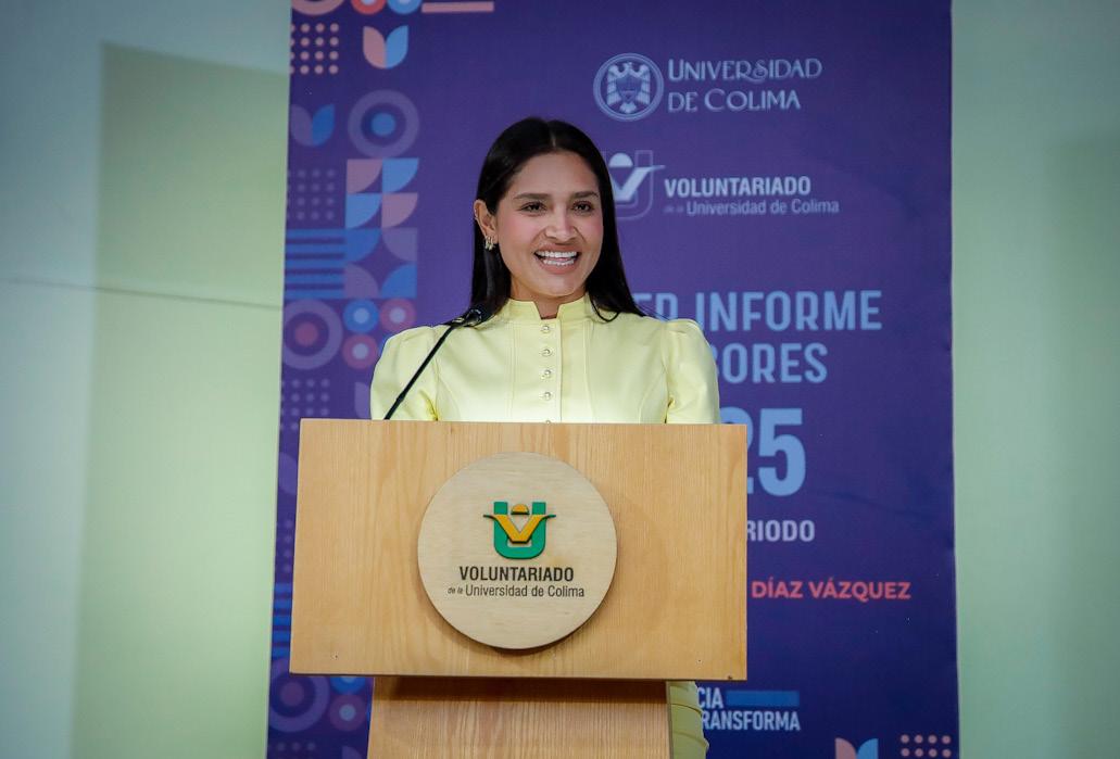 Con Blanca Liliana Diaz Vázquez, presidieron el evento Viridiana Valencia Vargas, secretaria de Bienestar, Inclusión Social y Mujeres, quien acudió en representación de la gobernadora del estado, Indira Vizcaíno Silva, y el Rector de la Universidad de Colima, Christian Jorge Torres Ortiz Zermeño. En su informe, Díaz Vázquez dijo que la acción voluntaria “es un ejercicio solidario que nace de la convicción propia, sin imposición ni expectativa de recompensa”, y que se orienta, dijo, al beneficio colectivo. “En el Voluntariado de la Universidad