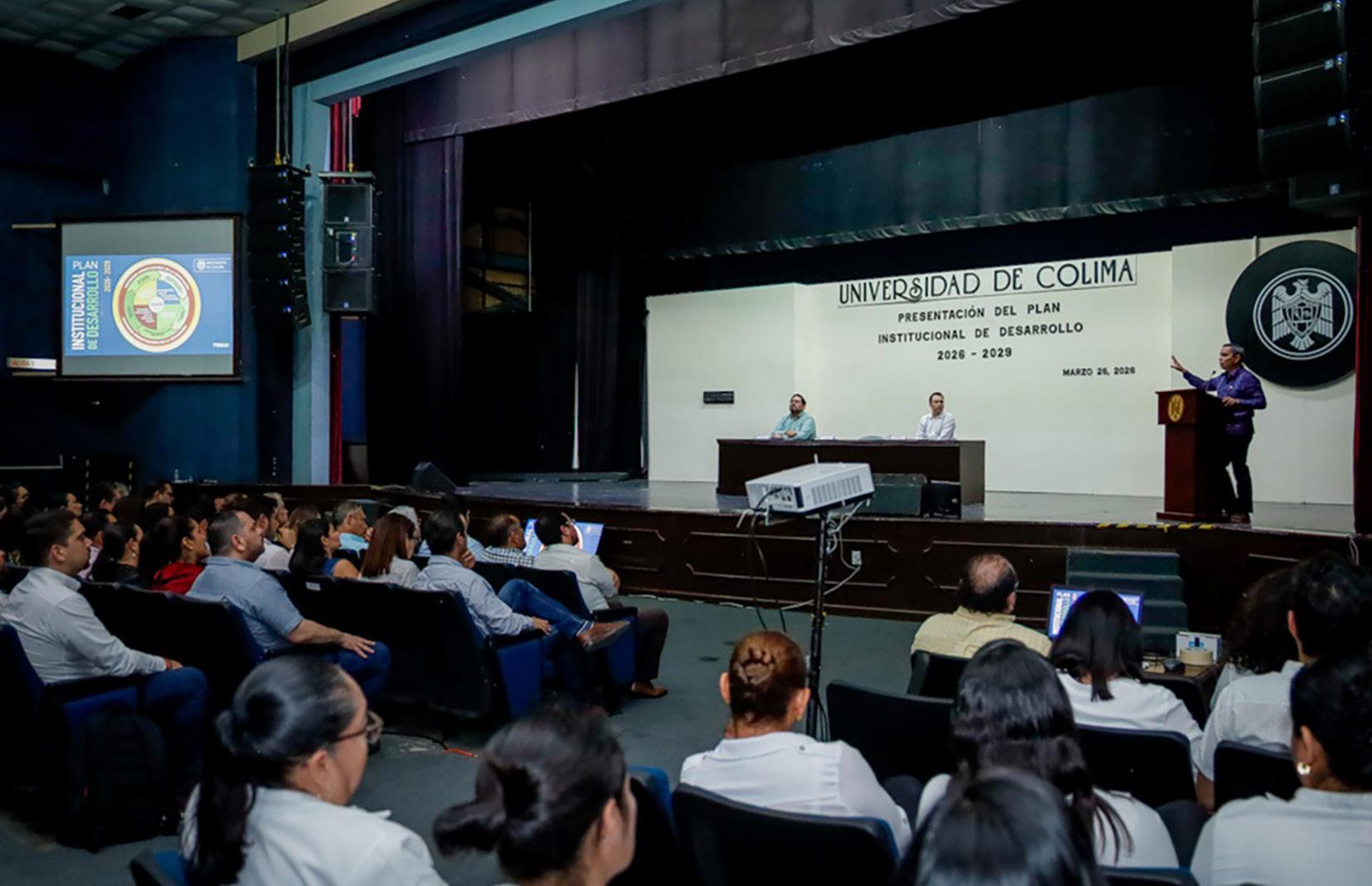 Con un evento celebrado en el Paraninfo, fue presentado a la comunidad universitarias el Plan Institucional de Desarrollo (PIDE) 2026-2029, documento estratégico que guiará el rumbo de la vida institucional, alineando esfuerzos, recursos y acciones para el cumplimiento de la misión de la Universidad de Colima (UdeC) y el logro de su visión. La presentación estuvo a cargo de Rogelio Pinto Pérez, coordinador de Planeación y Desarrollo Institucional, quien describió al nuevo PIDE como un modelo integrado por 4 programas sectoriales y 5 ejes transversales.