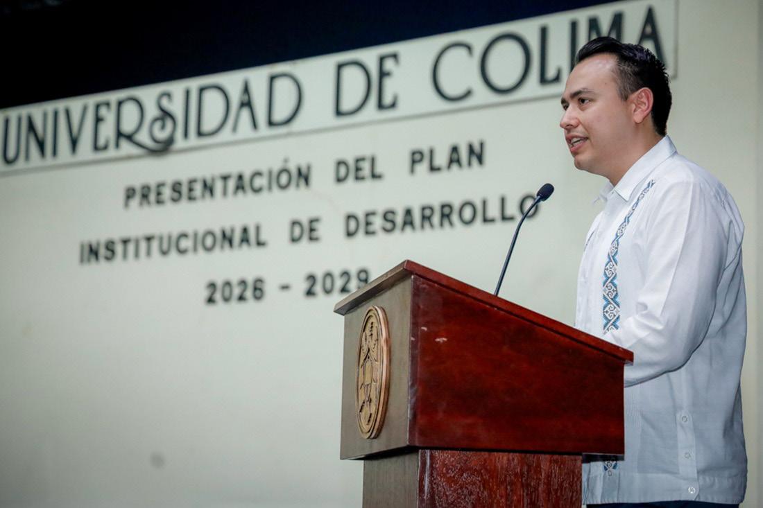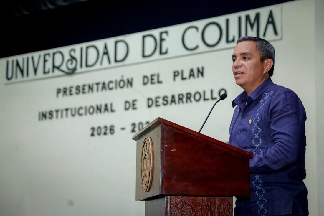 El Plan Institucional de Desarrollo, dijo, “es resultado de un ejercicio amplio y participativo titulado Tejiendo los Futuros de la Universidad de Colima, ejercicio que convocó la participación de estudiantes, docentes, personas pensionadas, jubiladas y de todas las categorías del personal de la Universidad de Colima”.