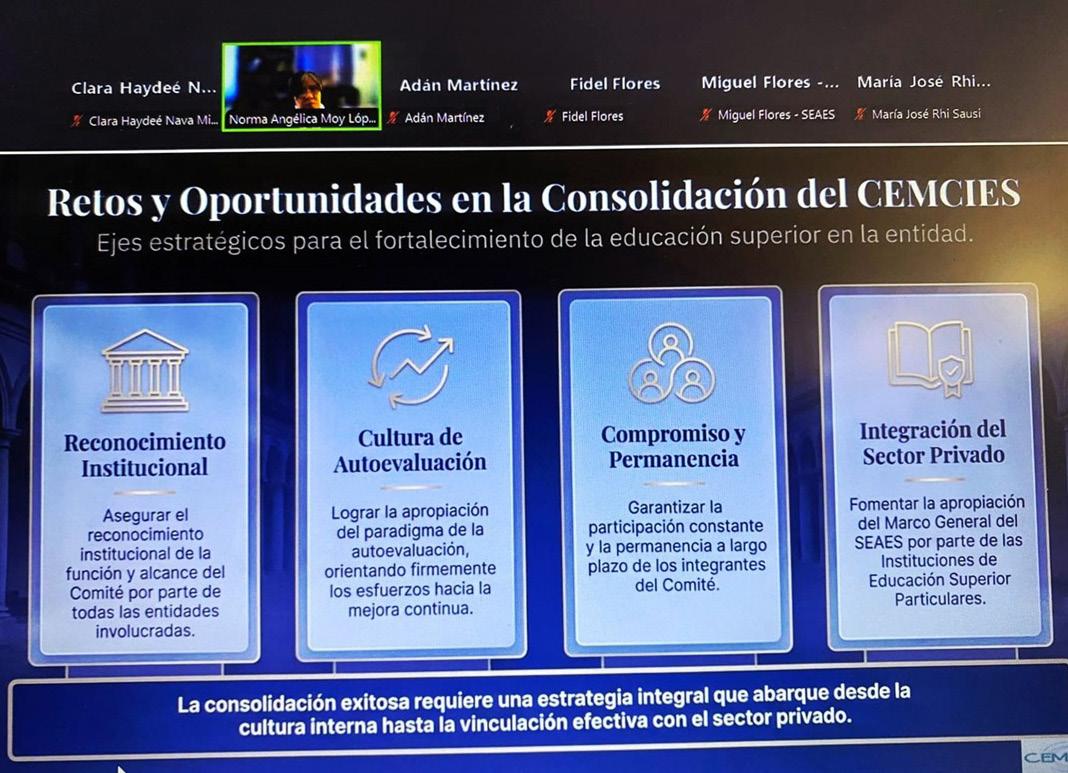 El encuentro fue inaugurado por la directora del S eae S , maestra María José Rhi Sausi Garavito, y coordinado por el maestro Adán Martínez Hernández, director de Vinculación del organismo. En la jornada, integrantes de los Comités de Mejora Continua intercambiaron experiencias en torno a los procesos de autoevaluación institucional.