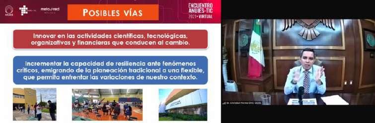 Dijo que actualmente las IES del país se enfrentan a disposiciones gubernamentales que tienen que ver con una reorientación de la Educación Superior en el país, “una nueva Ley General de Educación Superior que perfilará cambios estructurales en la Educación Superior en México; además, seguimos teniendo un desafío importante en los temas de cobertura, absorción, y de cómo enfrentamos está crisis de salud pública”.