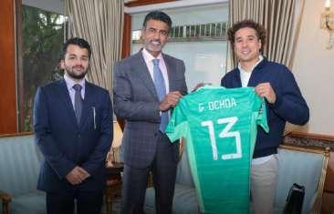 Mohammed Alkuwari, embajador de Catar en México, recibió a Guillermo Ochoa en la antesala de la Copa del Mundo a disputarse en su país y, a través de sus redes sociales, mostró algunos detalles del encuentro, donde se les ve posando la camiseta del arquero americanista.