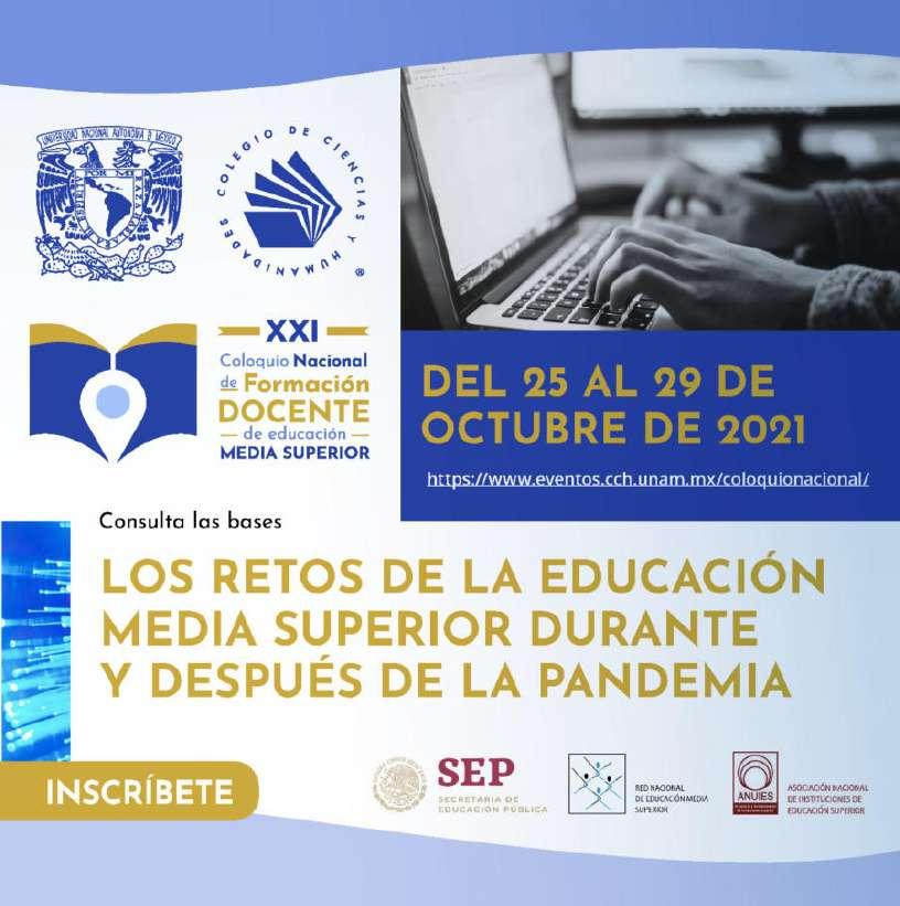 Como un espacio para el intercambio de ideas, experiencias de aprendizaje, prácticas docentes, análisis y la reflexión del contexto que enfrenta la Educación Media Superior en el país, se realiza del 25 al 29 de octubre, en formato virtual, el 21 Coloquio Nacional de Formación Docente de Educación Media Superior que organiza la Asociación Nacional de Universidades e Instituciones de Educación Superior (Anuies).