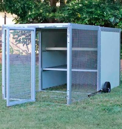 Portable, easy to set up, fold away design, 3 clamps secure wool pack, holds full size wool pack, ergonomic low front easy loading, folds down flat for easy storage. Can be used for recycling, workshop and green waste. Designed in Australia.