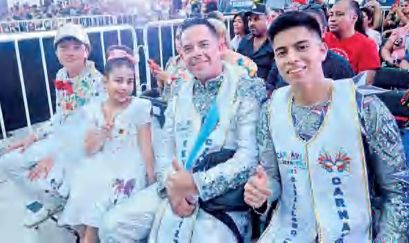 Los Reyes Infantiles, Pato Veloz y Daniela Rivera con el Rey César Vargas y Johan García, Caballero de la Alegría.