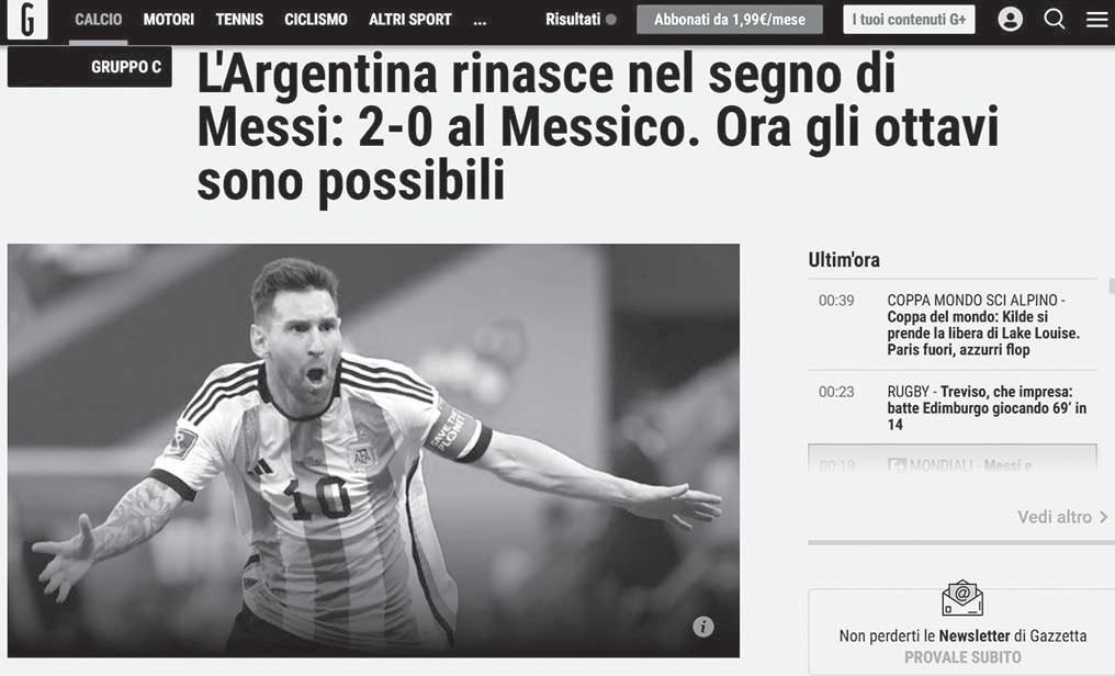“Goleador y luego pasador ante México este sábado (2-0), Lionel Messi le dio a Argentina su primera victoria en este Mun dial. Argentina sigue viva. Si bien