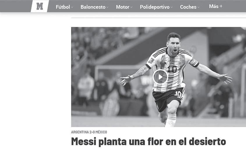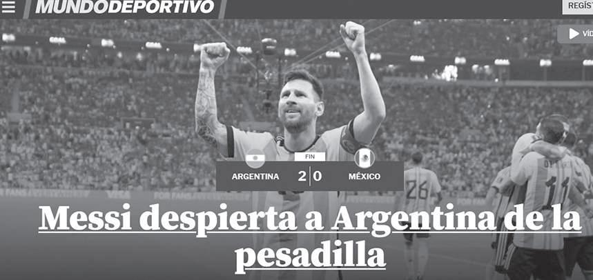 La victoria de Argentina sobre México por marcador de 2-0 en el segundo compromiso de la fase de grupos de la Copa Mundial Qatar 2022 y la actuación de su estrella, Lionel Messi, se llevaron las portadas de la prensa a nivel internacional, pues los medios más importantes destacaron la actuación del astro argentino y el ánimo que recuperaron al obtener su primer triunfo y con ello tener en sus propias manos la posibilidad de avanzar a los octavos de final.