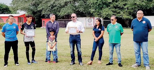 De la Fuente Ugalde, Presidente de la Liga Formativa de Futbol Luis De la Fuente y De Ho yos, “El Pirata”, entregó a nombre de la liga dos reconocimientos, uno a la organización Nido Liga Pirata Fuente entrega reconocimiento