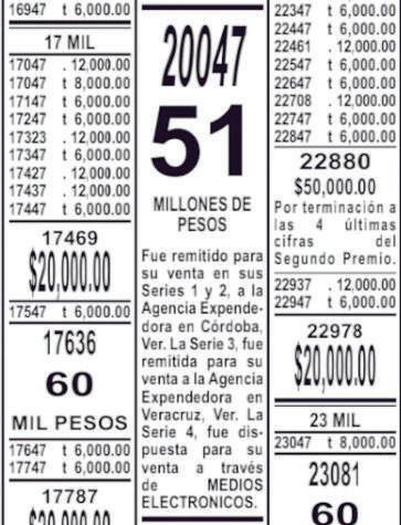Luego de que se llevó a cabo el sorteo de la Lotería Nacional, se informó que el premio mayor de la Lotería Nacional cayó en la ciudad de los 30 Caballeros, donde fueron remitidas para su venta las series 1y 2, la tercera en Veracruz Puerto, enhorabuena a los ganadores.