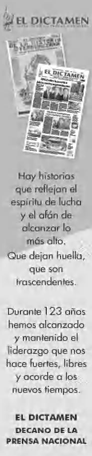 Año 125 No. 45192 FUNDADO EL 16 DE SEPTIEMBRE DE 1898 DECANO DE LA PRENSA NACIONAL BERTHA ROSALIA MALPICA MARTÍNEZ DE AHUED - PRESIDENTA EJECUTIVA Y DIRECTORA GENERAL JUAN MALPICA MIMENDI 1960-1998 JUAN MALPICA SILVA 1912-1960 PRECIO $10 www.eldictamen.mx Veracruz, Ver. a Domingo 23 de Abril de 2023