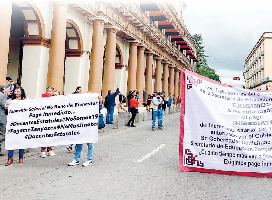 Por tercer día consecutivo, las y los empleados del sistema estatal realizaron protestas en esta ciudad, como el paro laboral en por lo menos ocho planteles escolares de Xalapa;