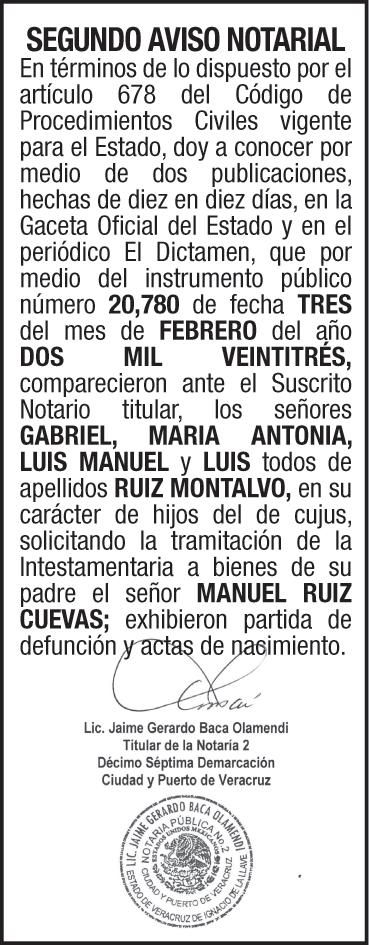 Año 125 No. 45209 FUNDADO EL 16 DE SEPTIEMBRE DE 1898 DECANO DE LA PRENSA NACIONAL BERTHA ROSALIA MALPICA MARTÍNEZ DE AHUED - PRESIDENTA EJECUTIVA Y DIRECTORA GENERAL JUAN MALPICA MIMENDI 1960-1998 JUAN MALPICA SILVA 1912-1960 PRECIO $10 www.eldictamen.mx Veracruz, Ver. a Jueves 11 de Mayo de 2023 Suscríbete completamente GRATIS a El Dictamen a través de WHATSAPP. No te pierdas las noticias del momento. Solo manda ALTA al 229 434 3256 DE CA NO DE LA PRENSA NA CION AL (229) 932-5466 (229) 931-5804 Ext. 330 Publicidad Ext. 309 Suscripciones (229) 932-8980 (229) 931-1745 VISITA NUESTRA PÁGINA