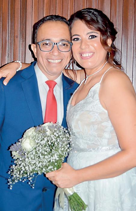 Edgar Madrid Reyes y Ana Gabriela Menéndez Campos felices al salir de la Catedral de Veracruz.