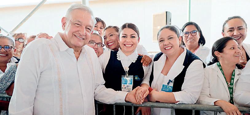 fortalecimiento del sistema de salud hasta por cinco años conservando su pensión. A las y los trabajadores del sector salud en Tamaulipas les dijo que, además de recibir prestaciones y sueldos completos, serán basificados. Sostuvo que en Tamaulipas “han mejorado sustancialmente las condiciones. Hay circunstancias muy favorables, condiciones inmejorables. (…) Estoy muy contento, vuelvo a repetir, lo expreso con sinceridad, estoy muy contento por el gobernador que tienen en Tamaulipas. Ya era tiempo, habían padecido mucho de malos gobiernos”. Acompañaron al presidente, el gobernador de Tamaulipas, Américo Villarreal Anaya; el secretario de Salud, Jorge Alcocer Varela; el director general del Instituto Mexicano del Seguro Social, Zoé Robledo Aburto; la directora general de los Servicios de Salud del Instituto Mexicano del Seguro Social para el Bienestar IMSS Bienestar, Gisela Lara Saldaña y Joaquín Juárez Durán, director del Hospital de Especialidades IMSS Bienestar Tampico, Dr. Carlos Canseco.