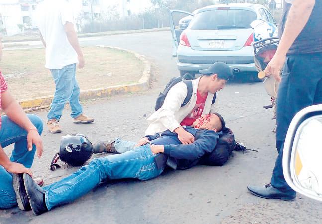 JOSÉ GUERRERO MIRAVETE / EL DICTAMEN / CÓRDOBA, VER Un motociclista resultó lesionado de gravedad durante la mañana del miércoles, al impactarse contra un vehículo Peugeot cuyo conductor realizó un corte de circulación al momento de entrar al fraccionamiento colinas de San José, mientras que el motociclista quedó tendido en el pavimento de la carretera Estatal Córdoba- Naranjal, hasta el arribo de los socorristas quiénes lo tuvieron que enviar a un hospital para recibir atención médica.