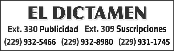 NACIONAL BERTHA ROSALIA MALPICA MARTÍNEZ DE AHUED - PRESIDENTA EJECUTIVA Y DIRECTORA GENERAL JUAN MALPICA MIMENDI 1960-1998 JUAN MALPICA SILVA 1912-1960 PRECIO $10 www.eldictamen.mx Veracruz, Ver. a Jueves 6 de Abril de 2023 VISITA NUESTRA PÁGINA DE CA NO DE LA PRENSA NA CION AL DESDE 1898 (229) 932-5466 (229) 931-5804 Ext. 330 Publicidad Ext. 309 Suscripciones (229) 932-8980 (229) 931-1745 Suscríbete completamente GRATIS a El Dictamen a través de WHATSAPP. No te pierdas las noticias del momento. Solo manda ALTA al 229 434 3256