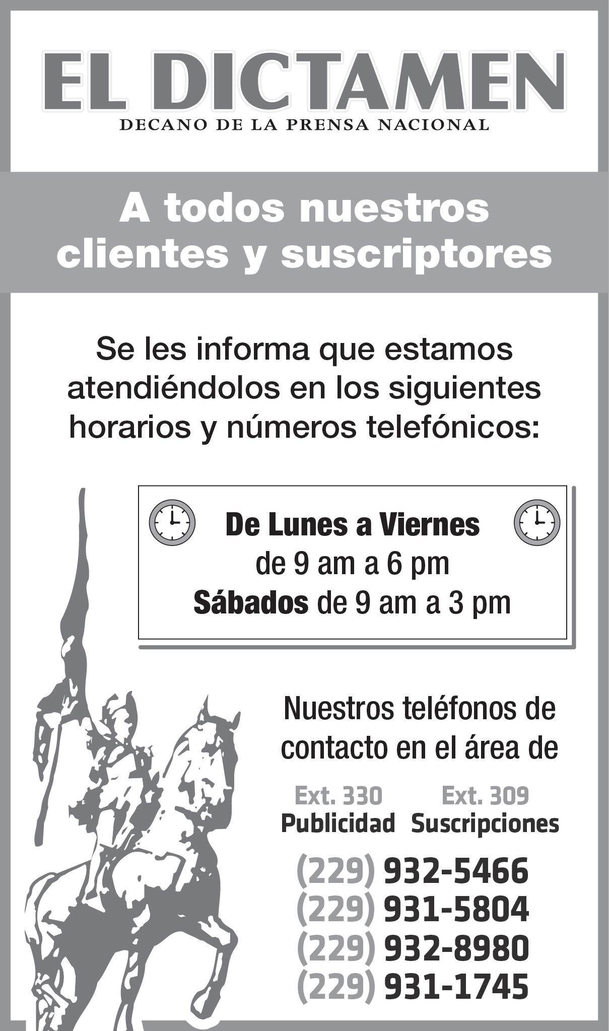 Se puso en marcha el arranque del Operativo Mochila en el estado de Veracruz, serán los padres de familia y directivos los encargados de supervisar este program. AVC / EL DICTAMEN Se informa a nuestros queridos lectores que el día de mañana 2 de noviembre, su periódico El Dictamen no será publicado, regresando a sus manos el jueves 3, trayéndole la información local, estatal, nacional e internacional más importante. Atento Aviso Atentamente la Dirección General DE CA NO DE LA PRENSA NACION AL DESDE 1898 (229) 932-5466 (229) 931-5804 Ext. 330 Publicidad Ext. 309 Suscripciones (229) 932-8980 (229) 931-1745 Suscríbete completamente GRATIS a El Dictamen a través de WHATSAPP. No te pierdas las noticias del momento. Solo manda ALTA al 229 434 3256 2 PRINCIPAL PRINCIPAL 2 MANUEL PÉREZ EL DICTAMEN MANUEL PÉREZ EL DICTAMEN 3 PRINCIPAL ALVARO RAMOS / EL DICTAMEN
