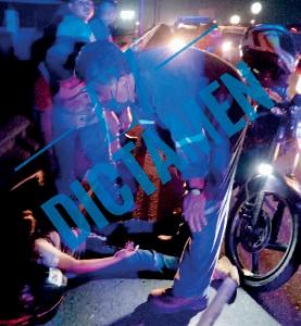 a velocidad inmoderada, impactó en ángulo frontal contra un automóvil particular, de la marca Chevrolet, donde viajaban dos personas.
