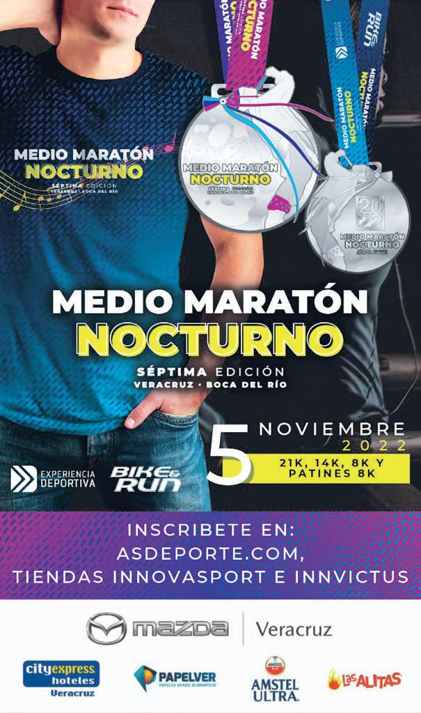 Todo se encuentra listo, este sábado 5 de noviembre se correrá la séptima edición del Medio Maratón Nocturno, el cual se desarrollará sobre el boulevard Ávila Camacho entre los municipios de Veracruz y Boca del Río. Gran expectativa despierta el interés de cientos de corredores tanto locales, estatales, regionales y nacionales para participar en este magno evento deportivo, tradicional entre los amantes de las carreras pedestres. “Actualmente, las inscripciones se encuentran al 87% de la capacidad de mil 500 corredores. La prueba se disputará en las