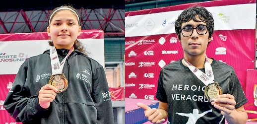 Atletas veracruzanos volvieron a subir al podio al obtener dos medallas más, ambas de bronce, en la segunda jornada de gimnasia de trampolín de los Nacionales Conade 2023 que se realizan en Aguascalientes. La primera medalla de bronce cayó en la modalidad por equipos, conformado por Ángel Chaparro y Adrián Tamay realizando una puntuación de 41.410, unidades que le sirvieron para agenciarse el metal plateado, en la categoría 15-16 sincronizado.