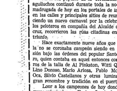 Era el año de 1970 y la Liga Mexicana de beisbol vivió un cambio en el sistema de competencia; el circuito se dividió por primera vez en Zona Norte y Zona Sur y el campeón de ambas zonas, se enfrentarían una serie de campeonato de la Liga Mexicana, que tuvo como protagonistas a El Águila y los Diablos. Aquí parte del extracto de la reseña de ese campeonato, que hizo el periodista Tomás Morales.