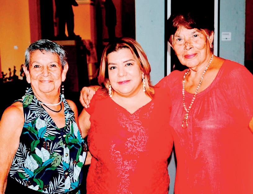 Luz Aldape, Lic. Sandra Vázquez y Genoveva Juárez Badillo, expositoras de la Feria del Arte con la anfitriona en el Recinto de la Reforma.