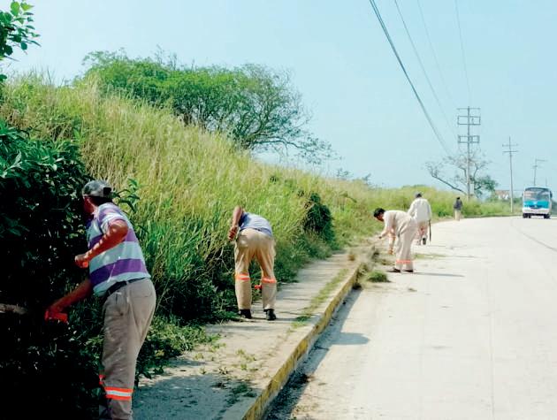 En un esfuerzo coordinado, alrededor de cien trabajadores de la Subdirección de Ornatos, Parques y Jardines, Maquinaria Pesada y Limpia Pública realizaron la mañana del martes chapeo así como limpieza de banquetas y camellones de la vialidad que abarca aproximadamente cuatro kilómetros.