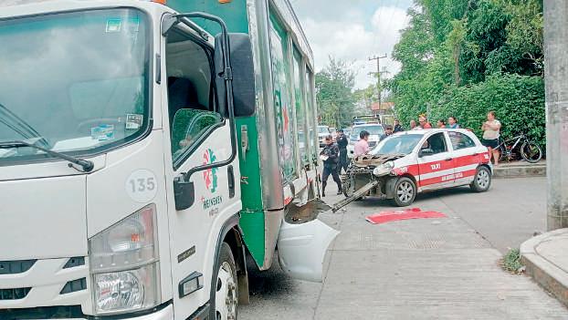 Lo anterior ocurrió el martes en el cruce de las calles Erasmo Castellanos y José Azueta en la comunidad de Calería, donde se vieron involucrados el taxi marcado con el número 388 de San Andrés Tuxtla y un camión