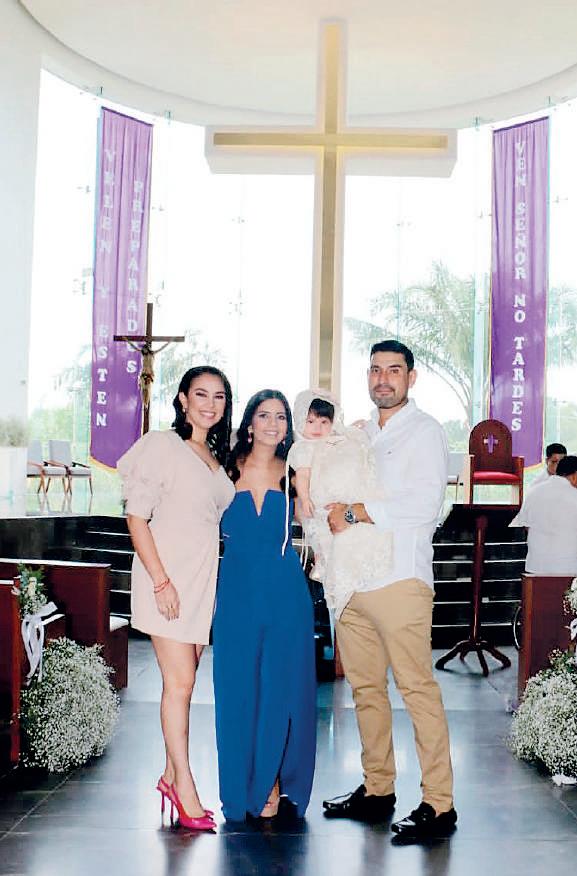 Martina en brazos de sus papás Karla Rodríguez Urbano y Eric Cedillo Trujillo, al igual que de su madrina Paola Herrera Viveros.