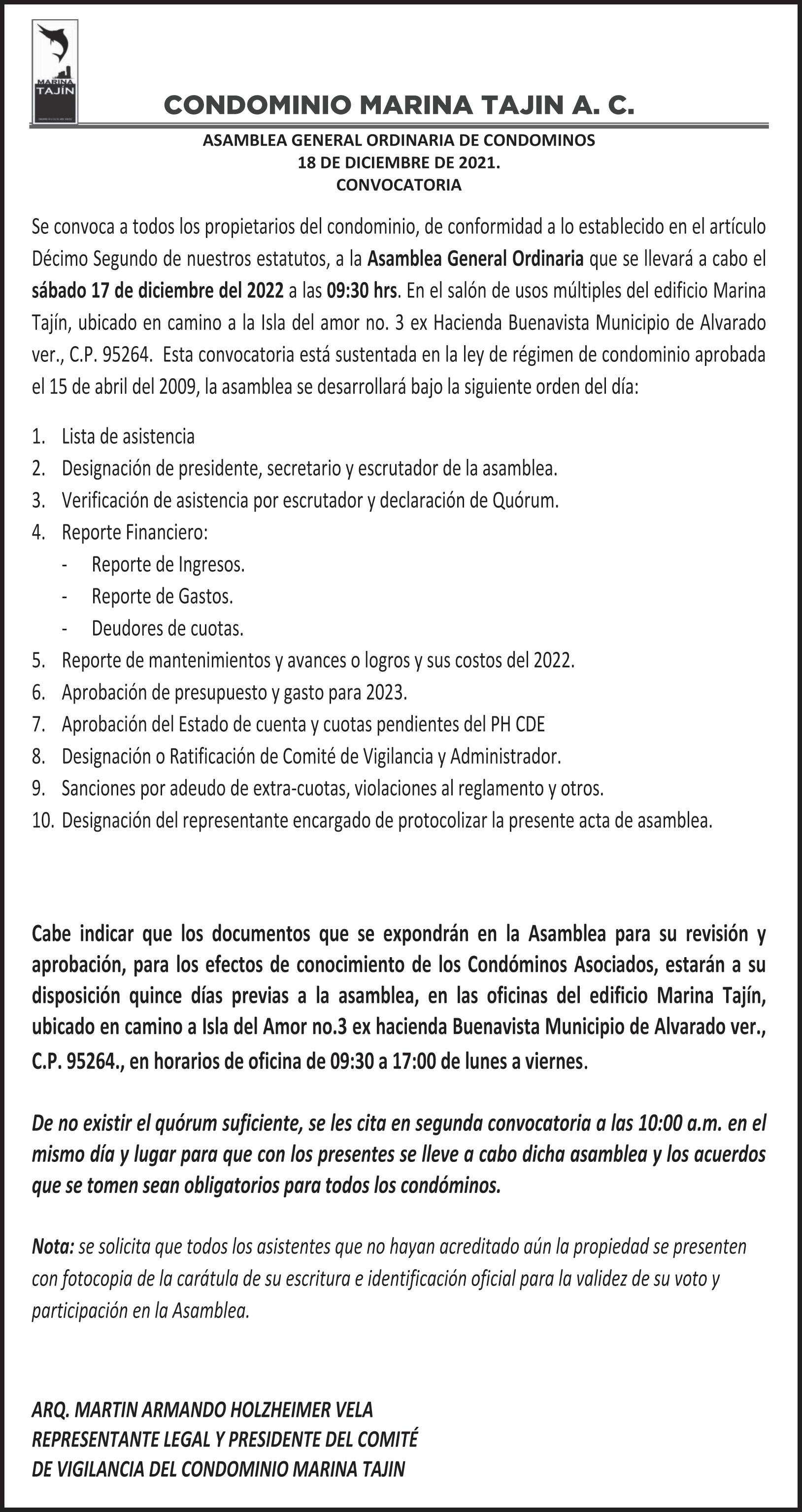 Dicho evento se realizará a las 17:00 horas del día viernes 2 de diciembre.