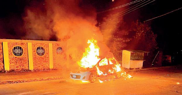 La mañana del martes en el municipio de Chinameca, una unidad de taxi fue envuelta por las llamas, presuntamente tras un corto circuito, informándose que el conductor resultó ileso.