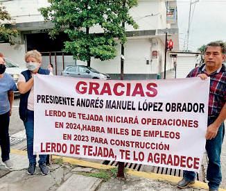 FloR de Jesús Meza cano / el dictaMenDurante la visita del presidente An drés Manuel López Obrador, al puerto de Veracruz, habitantes del municipio de Lerdo de Tejada, agradecieron al mandatario federal, la creación de empleos en esta zona, con la instala ción de una empresa que se encargará de extraer gas en costas veracruzanas.