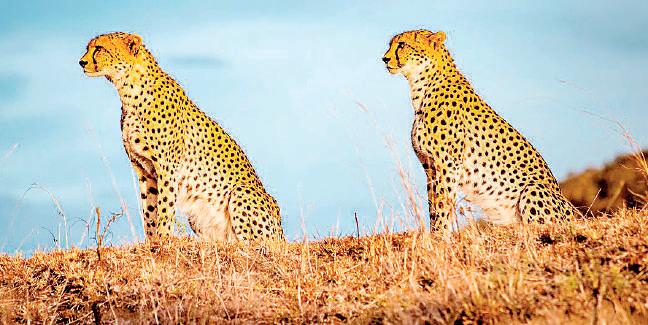 Guepardos al acecho al amanecer, en el parque nacional de Maasai Mara, en Kenia. biodiversidad. Las alianzas incluyen una variedad de iniciativas, desde asociaciones internacionales con objetivos globales, hasta recaudaciones escolares de fondos en beneficio de grupos conservacionistas, movilizaciones comunitarias, o la publicación de fotografías que sensibilicen sobre las especies en peligro de extinción. Todos los esfuerzos son necesarios.