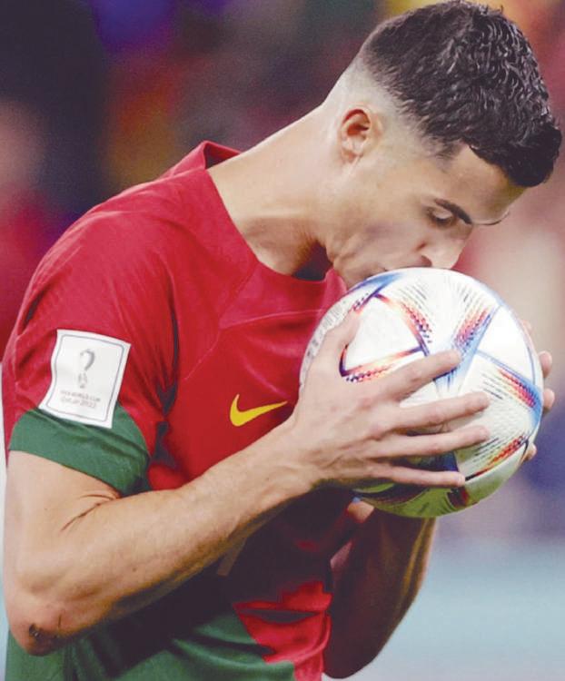 Después de días, semanas, tremenAdamente convulsas, que derivaron en el anuncio del fin de su relación con el Manchester Uni ted, Cristiano Ronaldo se convirtió en el primer jugador que marca en cinco Copas del Mundo y lo pudo celebrar gracias a un tanto de Joao Felix y otro de Rafael Leao que preservaron la victoria de 3-2 ante Ghana.