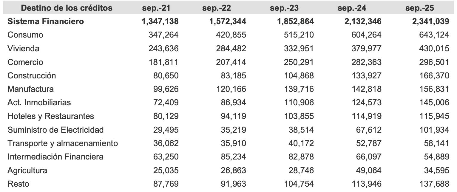durante los últimos dos años, situándose en 18.4% al corte de septiembre de 2025”, establece el informe de la SB. Otros sectores económicos