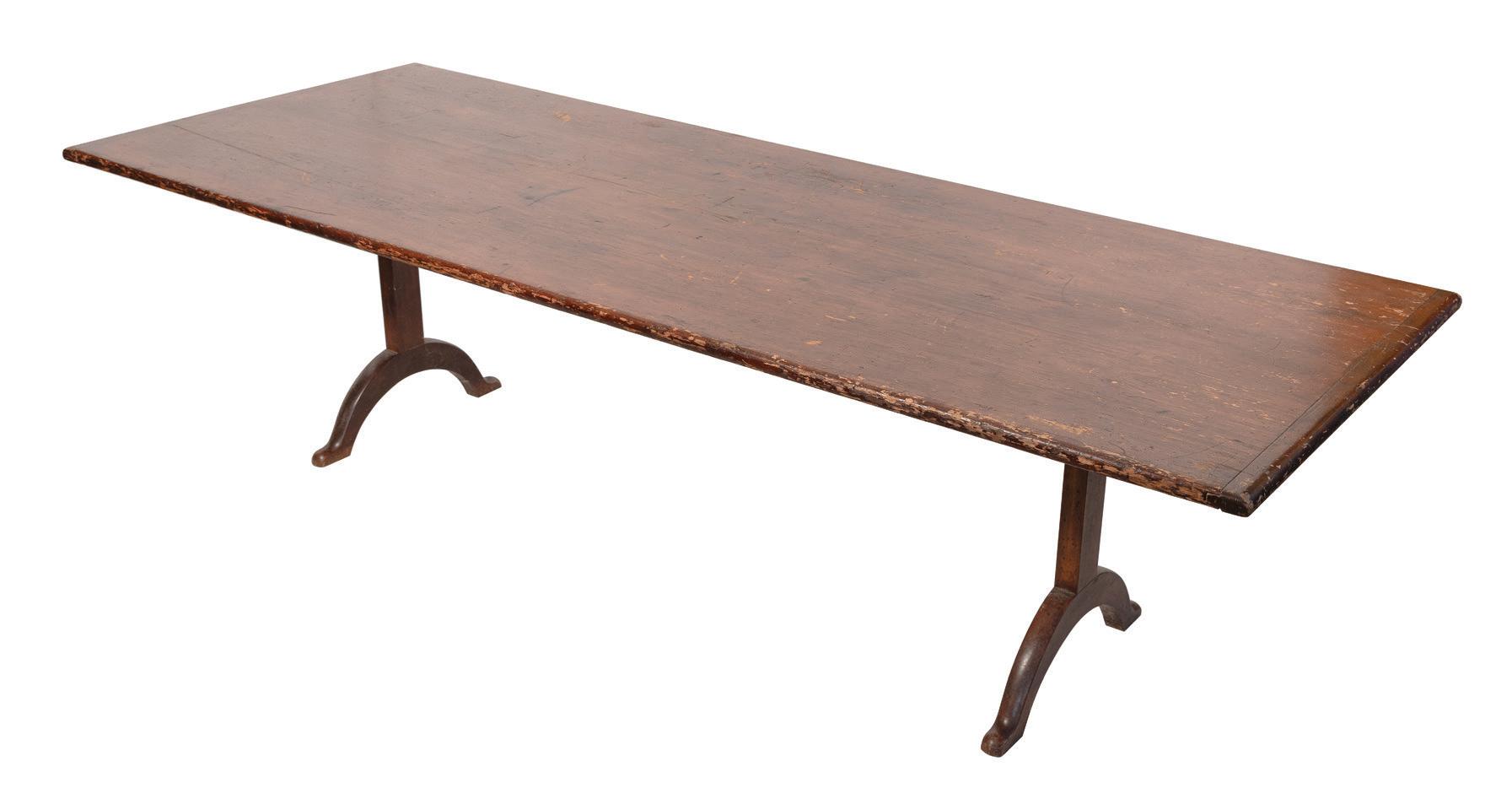 In hardwood, accompanied by an analysis identifying the wood as American Arched raised carved crest with scrolled ends. Foliate-carved arms. Front legs carved with an effigy design. Turned and blocked H-stretcher. Back and seat with old, possibly original, painted leather upholstery. Back height 52”. Seat height 18.75”. 1,800/2,500