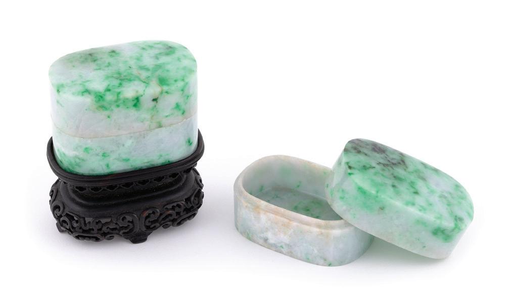 Presented to Mrs. E. Hunt by Namcheong Tailor, Whampoa (China). Includes original photos of Captain Thomas Hunt and Mrs. Hunt, as well as a fine assortment of carved ivory and other sewing implements. Mansard-style box covered with ivory veneer and micromosaic and set on ivory ball feet. Ivory plaque mounted to interior of lid engraved “Presented to Mrs. E. Hunt By Namcheong Tailor Whampoa 1854”. Interior lined in purple velvet and fitted with a compartmented liftout tray, the compartment covers with coordinating ivory veneer and micromosaic. Height 4.75”. Width 13”. Depth 9”. 4,000/6,000
